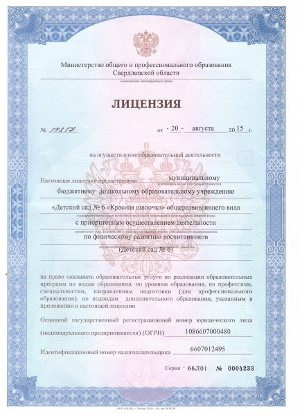 | Полное наименование образовательной организации* | Муниципальное бюджетное дошкольное образовательное учреждение «Детский сад № 6 «Красная шапочка» общеразвивающего вида с приоритетным осуществлением деятельности по физическому развитию воспитанников |