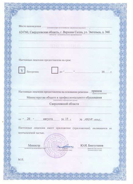 | Адрес местонахождения образовательной организации* | 624760, Свердловская область, г. Верхняя Салда, ул.Энгельса, 36 б |